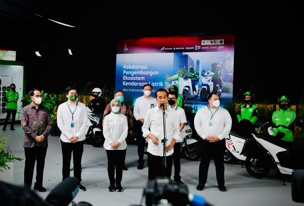 Demikian disampaikan Presiden Jokowi dalam sambutannya pada acara Peluncuran Kolaborasi Pengembangan Ekosistem Kendaraan Listrik, yang digelar di SPBU MT Haryono, Jakarta, pada Selasa, 22 Februari 2022.