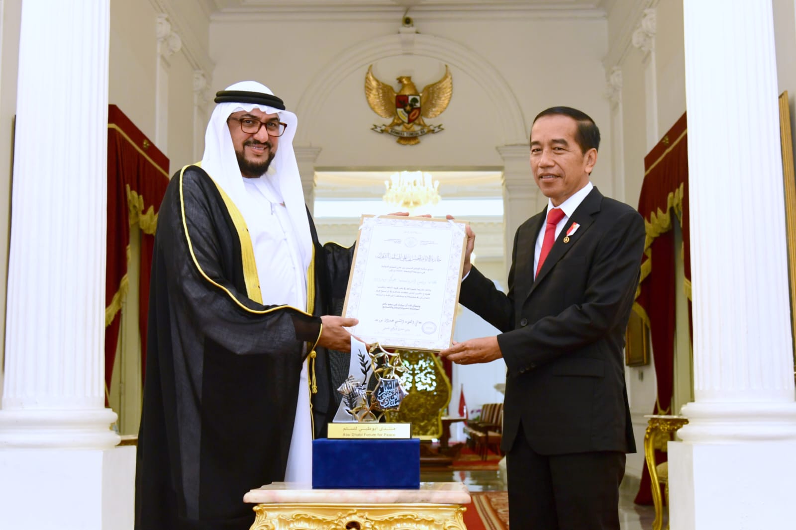 PEDOMAN.id – Presiden Joko Widodo menerima Penghargaan Perdamaian Internasional Imam Hasan bin Ali Tahun 2022 yang diserahkan di Istana Merdeka, Jakarta, pada Senin, 7 November 2022. Penghargaan dari Abu Dhabi Forum Peace Award tersebut diserahkan langsung oleh Sekretaris Jenderal Forum Perdamaian Abu Dhabi Cheikhna Abdallah AlSheikh AlMahfodh Bin Bayah.