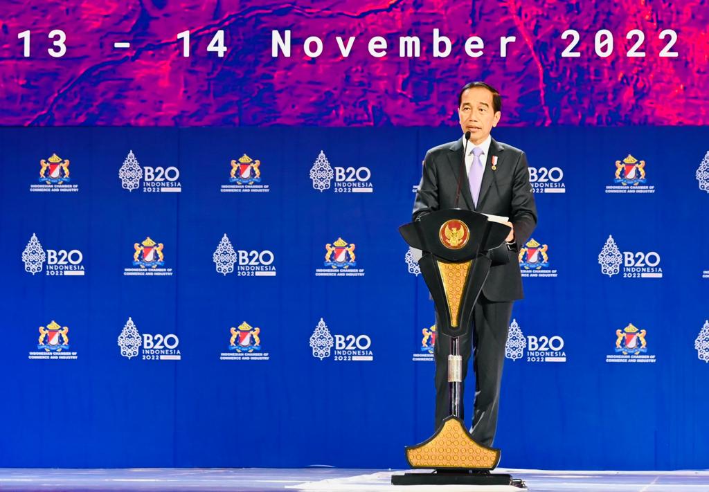 PEDOMAN.id – Presiden Joko Widodo menyampaikan sejumlah strategi besar yang dijalankan Indonesia secara konsisten dalam rangka mengatasi sejumlah masalah ekonomi yang melanda dunia, dalam B20 Summit tahun 2022, yang digelar di Bali Nusa Dua Convention Center (BNDCC), Kabupaten Badung, Provinsi Bali, pada Senin, 14 November 2022. Menurut Presiden, strategi tersebut berhasil membawa Indonesia menjadi salah satu titik terang di tengah kesuraman ekonomi dunia.