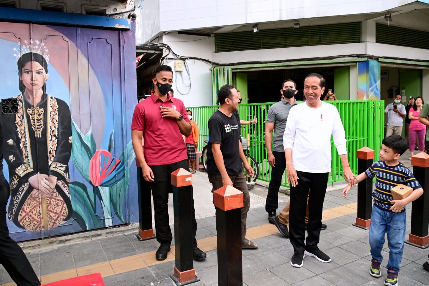 PEDOMAN.id – Usai mengunjungi kawasan wisata Solo Safari dan Solo Technopark, Presiden Joko Widodo didampingi Wali Kota Surakarta Gibran Rakabuming Raka dan putranya Jan Ethes mengunjungi Mas Don Art Center yang ada di Kecamatan Serengan, Kota Surakarta, pada Senin, 23 Januari 2023. Mas Don Art Center merupakan ruang kreatif yang digunakan untuk menyimpan arsip-arsip sejarah para pelopor bangsa dan penunjang kegiatan seni budaya di Kota Surakarta.
