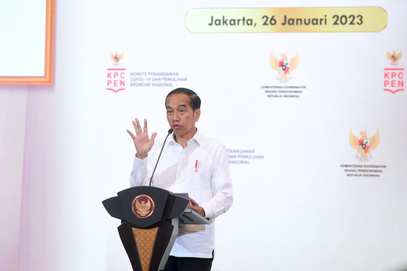 “Saya melihat semuanya kita ini bekerja karena tertekan oleh persoalan, tertekan oleh masalah, semuanya bekerja. Itu yang tidak saya lihat sebelum-sebelumnya,” ujar Presiden dalam sambutannya saat membuka Rapat Koordinasi Nasional (Rakornas) Transisi Penanganan Covid-19 dan Pemulihan Ekonomi Nasional (PC-PEN) Tahun 2023 di Gedung AA Maramis, Jakarta, pada Kamis, 26 Januari 2023.