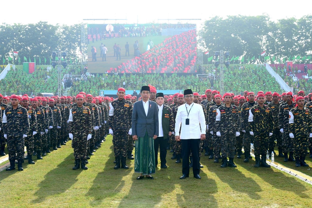 “Saya juga berharap agar NU merangkul dan memberi perhatian serius kepada generasi muda agar tetap mengakar kuat kepada tradisi dan adab ahlussunnah wal jamaah dan terus menguasai ilmu pengetahuan dan teknologi,” ucap Presiden. (Sumber: BPMI Setpres)