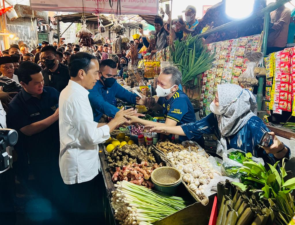 “Tadi saya sudah perintahkan Bulog untuk segera ke pasar ini agar ada seperti operasi pasar,” ucap Presiden.