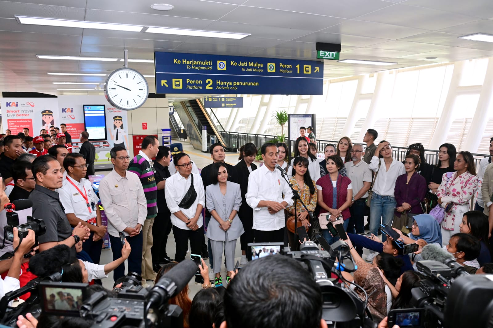 PEDOMAN.id – Presiden Joko Widodo mengajak para penggiat seni untuk mencoba moda transportasi Lintas Rel Terpadu (LRT) dalam perjalanan dari Stasiun Jati Mulya, Kabupaten Bekasi menuju Stasiun Dukuh Atas, Jakarta, pada Kamis, 10 Agustus 2023. Dalam kesempatan tersebut, sejumlah penggiat seni menyampaikan kesan-kesannya pertama kali mencoba LRT.