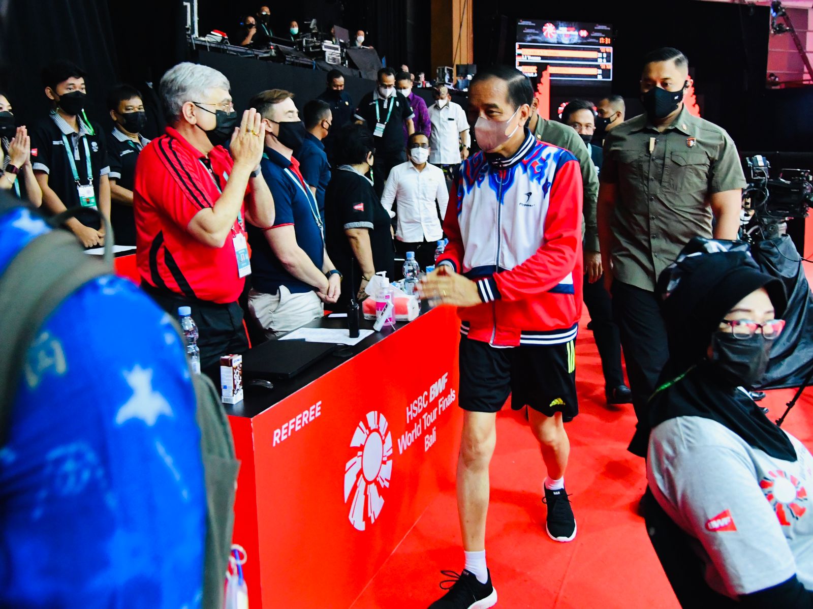 Turut mendampingi Presiden saat menyaksikan pertandingan badminton tersebut yaitu Menteri Sekretaris Negara Pratikno, Menteri Perhubungan Budi Karya Sumadi, Menteri Kesehatan Budi Gunadi Sadikin, Ketua Umum PBSI Agung Firman Sampurna, dan Gubernur Bali I Wayan Koster.