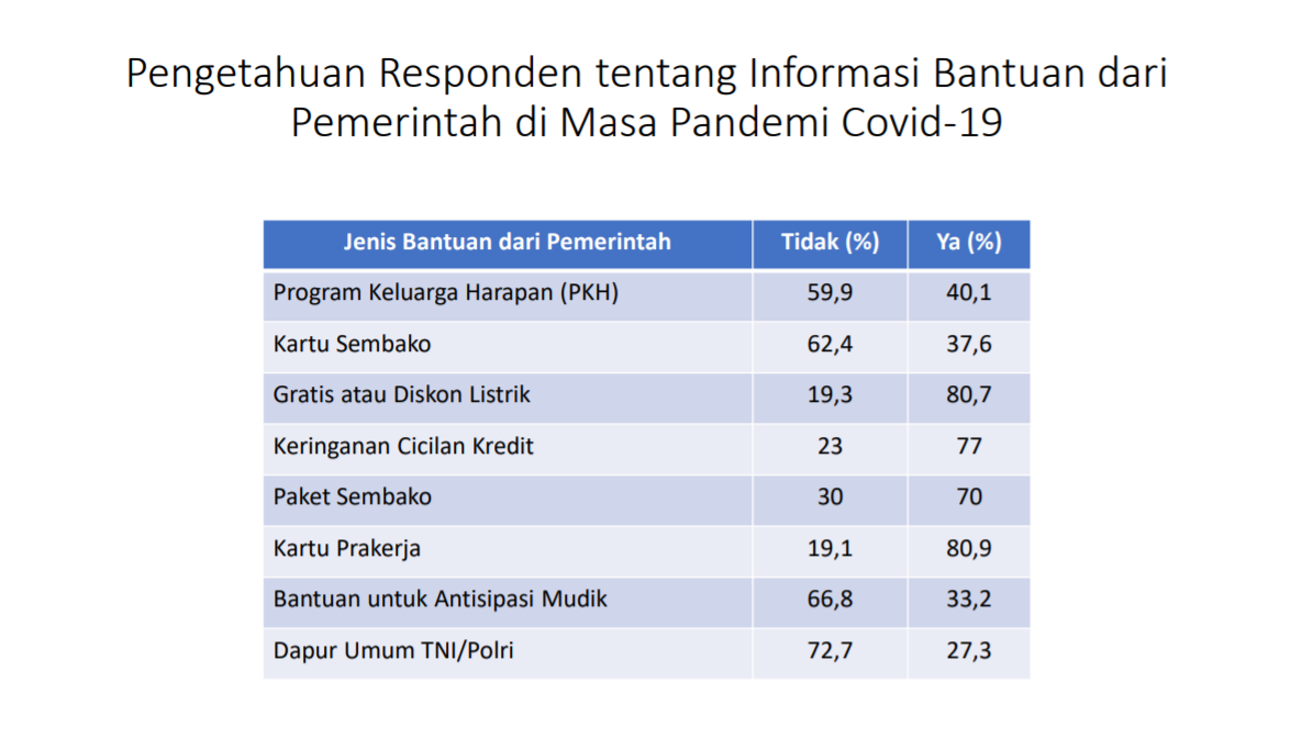 Hasil Survei Bantuan dari Pemerintah di Masa Pandemi Covid-19