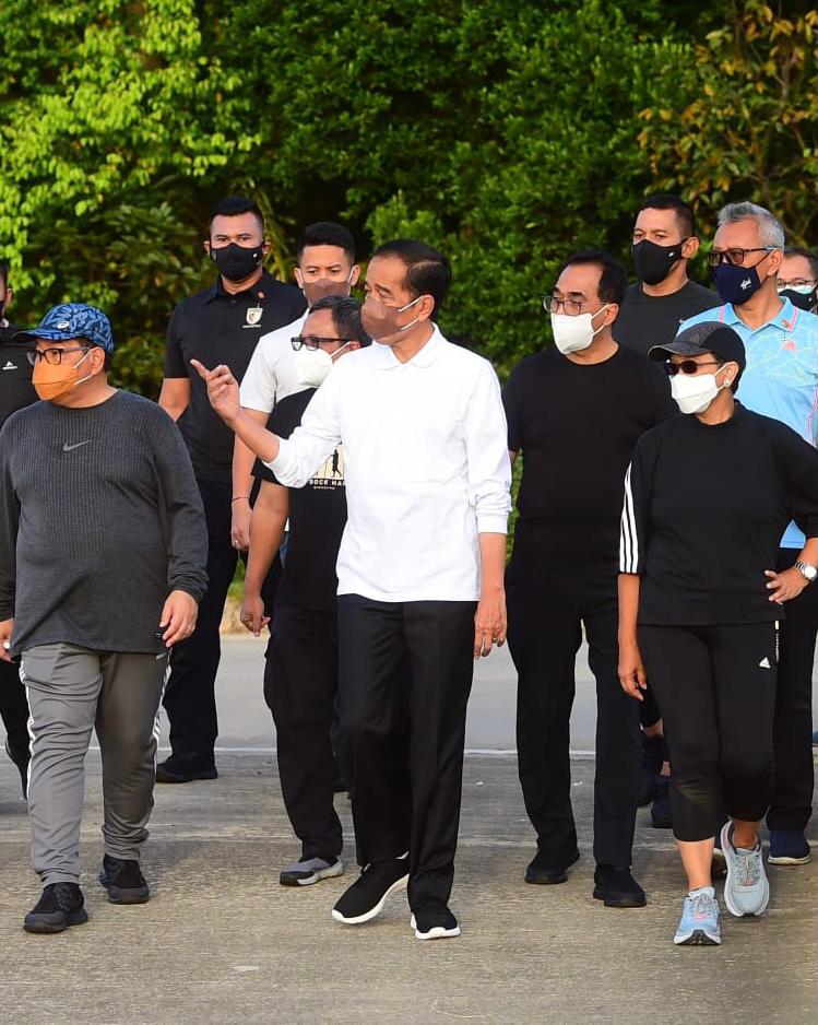 PEDOMAN.id – Mengawali kunjungan kerjanya di Provinsi Kepulauan Riau, Selasa, 25 Januari 2022, Presiden Joko Widodo berolahraga bersama sejumlah menteri. Sekitar pukul 06.40 WIB, Presiden mulai berjalan kaki mengelilingi area The Sanchaya Resort Bintan, Kabupaten Bintan.