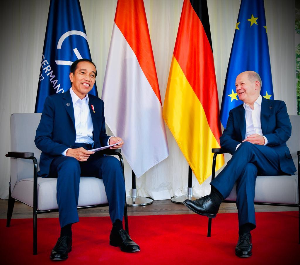PEDOMAN.id – Presiden Joko Widodo melakukan pertemuan bilateral dengan Kanselir Jerman Olaf Scholz di sela-sela KTT G7 di Elmau, Senin, 27 Juni 2022. Presiden Jokowi membahas tentang penguatan kerja sama ekonomi dan terkait Presidensi G20 Indonesia.