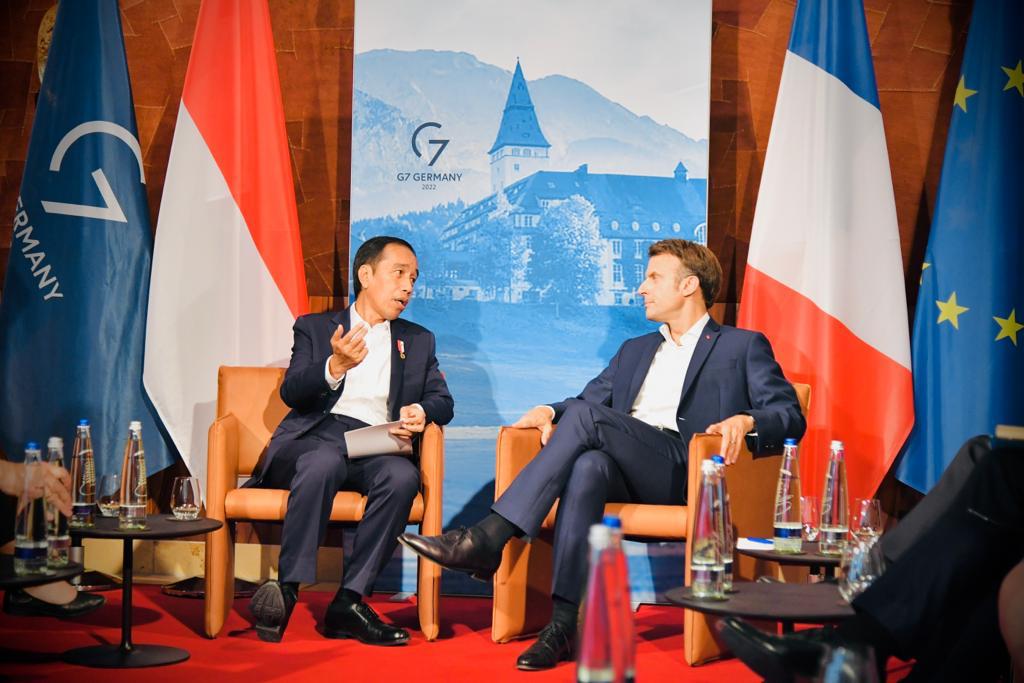 PEDOMAN.id – Presiden Jokowi melakukan pertemuan bilateral dengan Presiden Prancis Emmanuel Macron di sela-sela KTT G7 di Elmau, Jerman, Senin, 27 Juni 2022. Kedua pemimpin membahas situasi di Ukraina juga terkait Presidensi G20 Indonesia.