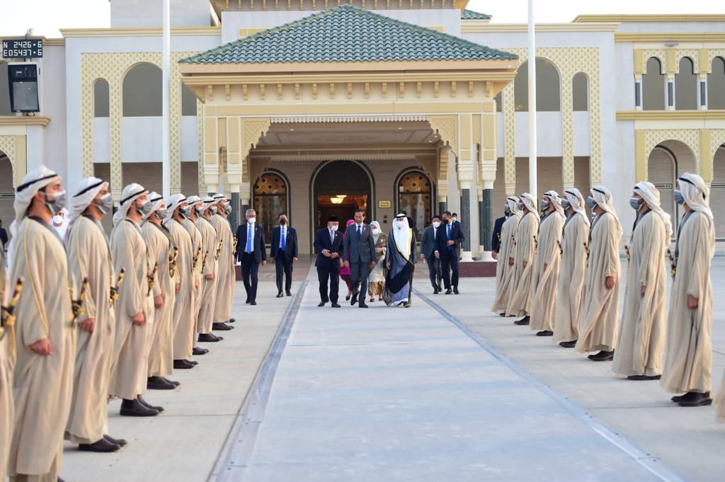Presiden dan Ibu Iriana dilepas oleh Menteri Energi dan Infrastruktur PEA Suhail Mohammed Al Mazroei, Duta Besar RI untuk PEA Husin Bagis beserta istri, dan Duta Besar PEA untuk Indonesia Abdullah Aldhaheri.