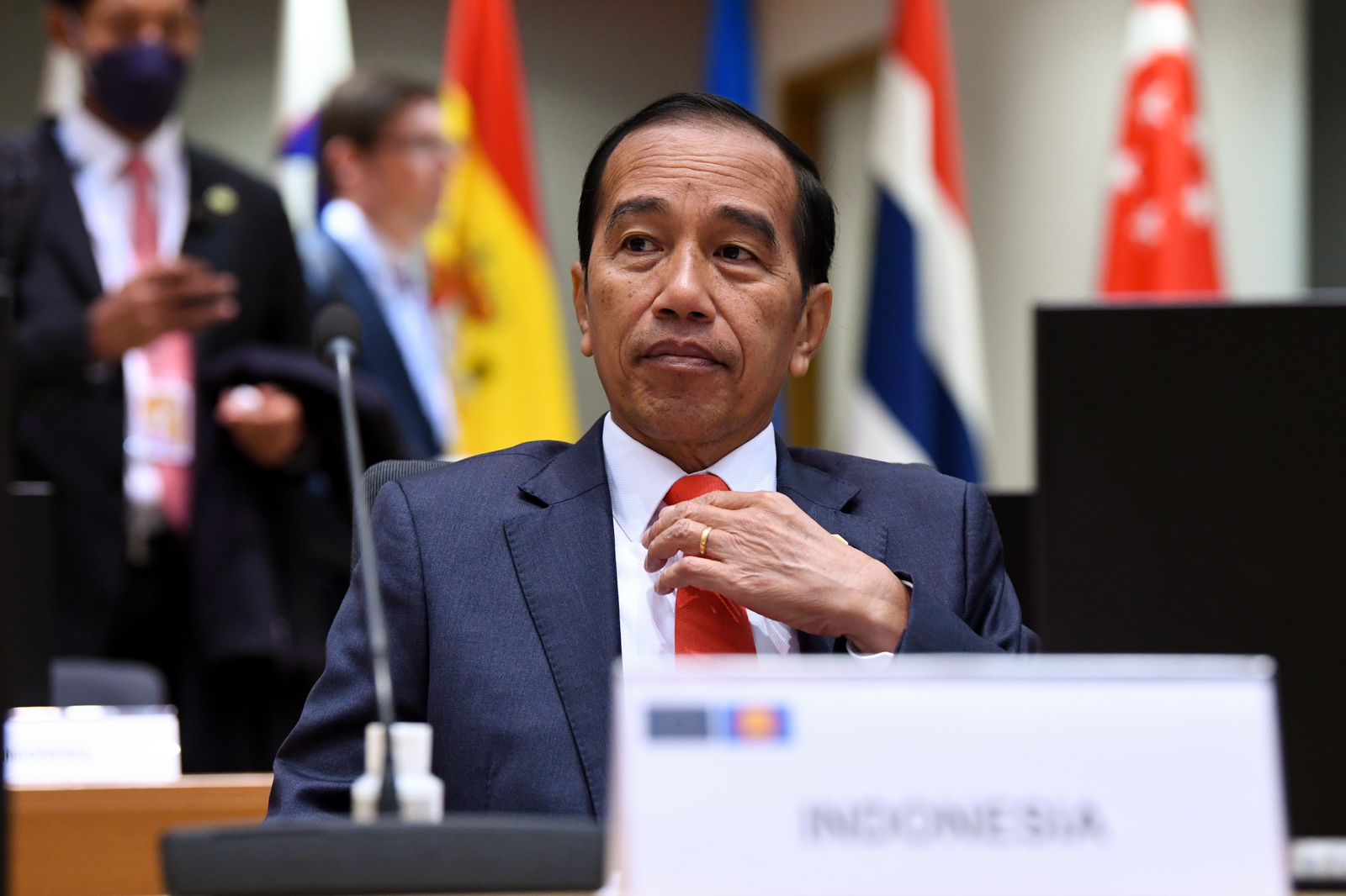 Tampak hadir dalam sesi pleno tersebut yaitu para pemimpin ASEAN dan Uni Eropa. Turut hadir pula mendampingi Presiden Jokowi yaitu Menteri Koordinator Bidang Perekonomian Airlangga Hartarto dan Menteri Luar Negeri Retno Marsudi.