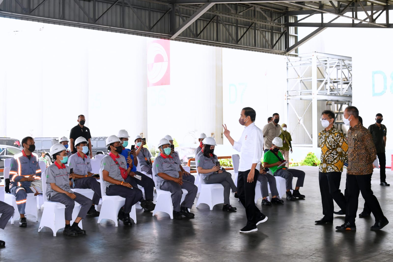 Turut mendampingi Presiden dalam peninjauan tersebut adalah Menteri Kesehatan Budi Gunadi Sadikin, Menteri Perindustrian Agus Gumiwang Kartasasmita, Sekretaris Jenderal Kementerian Perindustrian Dody Widodo, Plt. Bupati Bekasi Akhmad Marjuki, dan Managing Director Sinarmas Ferry Salman.