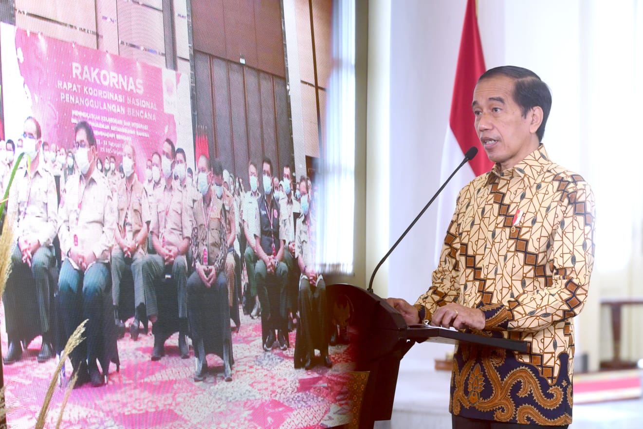 “Rencana Induk Penanggulangan Bencana tahun 2020-2044 harus dilaksanakan dengan penuh komitmen, penuh tanggung jawab. Semua tahapan harus dilaksanakan secara disiplin dan konsisten,” ucap Presiden dalam sambutannya secara virtual pada peresmian pembukaan Rapat Koordinasi Nasional Penanggulangan Bencana 2022 di Istana Kepresidenan Bogor, Rabu, 23 Februari 2022.