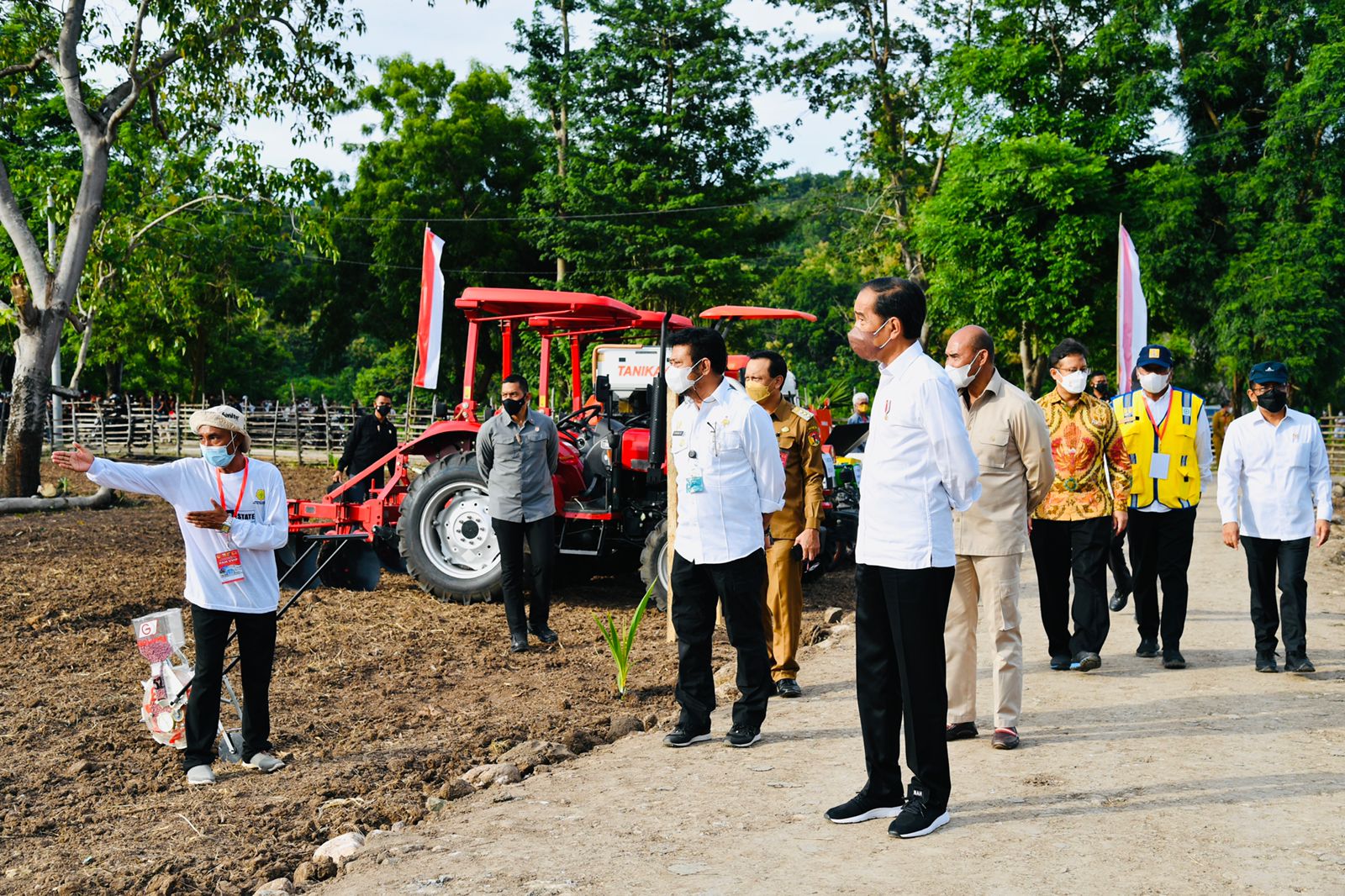 “Saya rasa kalau kita berani menggunakan teknologi, berani mencoba di lahan-lahan yang sulit seperti yang di NTT ini, nanti akan kelihatan semuanya, apa yang perlu diperbaiki, apa yang perlu dikoreksi, dan apa alsintan (alat dan mesin pertanian) yang pas untuk digunakan di daerah seperti NTT ini,” ujar Presiden.