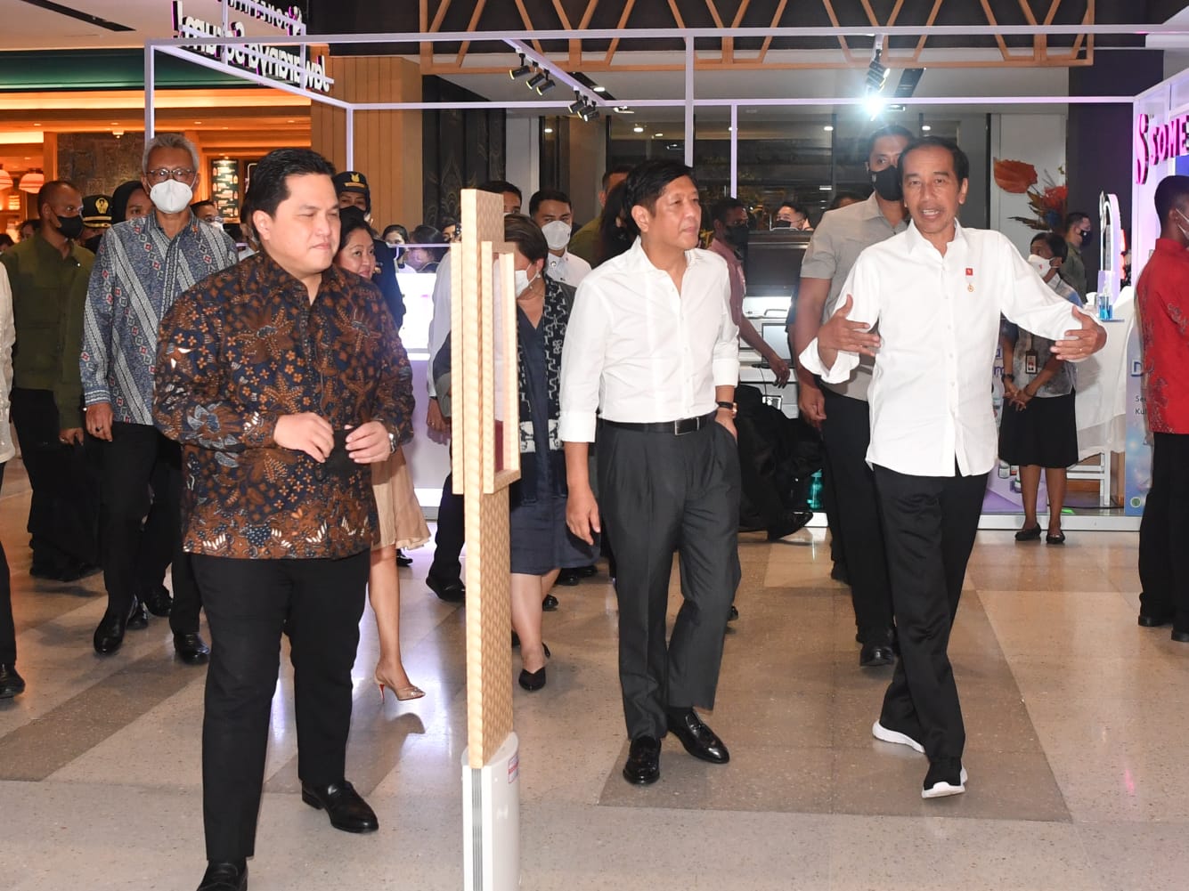 PEDOMAN.id – Usai menerima kunjungan kenegaraan Presiden Republik Filipina di Istana Kepresidenan Bogor, Presiden Joko Widodo mengajak Presiden Ferdinand Romualdez Marcos Jr. dan Ibu Louise Araneta Marcos mengunjungi Gedung Sarinah, Jakarta, pada Senin malam, 5 September 2022, untuk menunjukkan produk-produk asli Indonesia.