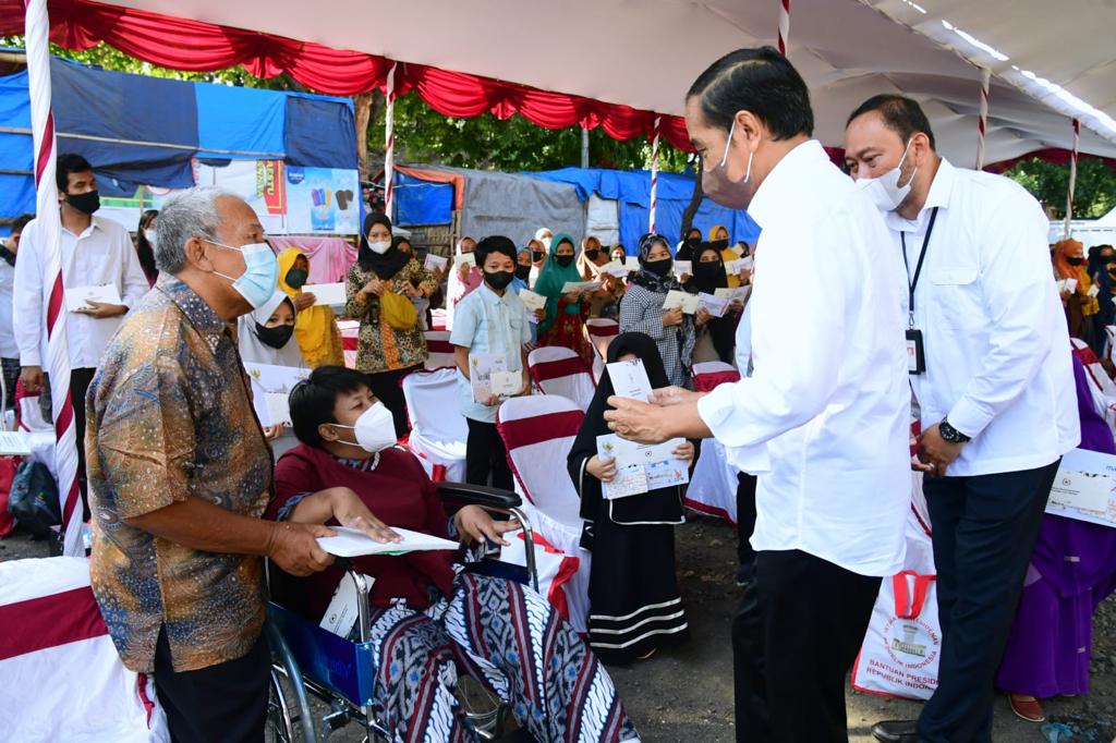 PEDOMAN.id – Mengawali kunjungan kerjanya di Provinsi Jawa Barat, Presiden Joko Widodo memberikan sejumlah bantuan sosial (bansos) di Pasar Harjamukti, Kota Cirebon, Rabu, 13 April 2022. Bantuan yang diserahkan antara lain Bantuan Modal Kerja (BMK) dan Bantuan Langsung Tunai (BLT) Minyak Goreng kepada para peserta Program Keluarga Harapan (PKH).