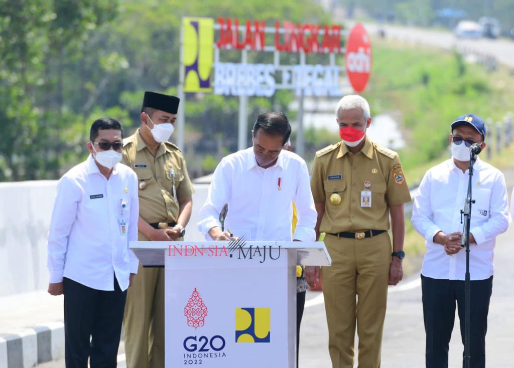PEDOMAN.id – Presiden Joko Widodo meresmikan Jalan Lingkar Brebes-Tegal di Jembatan Kaligangsa, Kabupaten Brebes, Provinsi Jawa Tengah, pada Rabu, 13 April 2022. Kehadiran jalan lingkar sepanjang 17,4 kilometer tersebut akan melengkapi struktur jaringan jalan nasional di wilayah pantai utara Jawa (Pantura) dan melengkapi jaringan jalan tol Trans-Jawa.