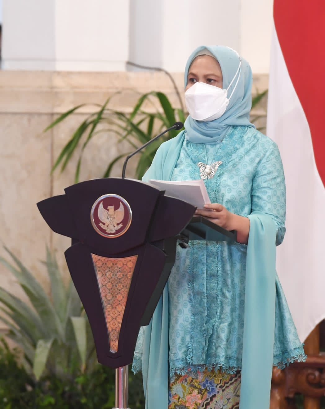 “Saya mengucapkan terima kasih kepada seluruh tenaga kesehatan perempuan dan kepada seluruh perempuan Indonesia yang telah berjuang mengendalikan pandemi di Tanah Air. Saya juga mengucapkan turut berduka cita kepada perempuan-perempuan Indonesia yang telah gugur dalam perjuangan menjadi garda terdepan dalam penanganan pandemi,” ungkap Iriana.