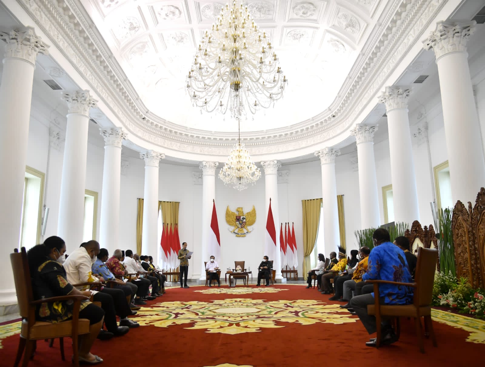 PEDOMAN.id – Presiden Joko Widodo menerima Majelis Rakyat Papua (MRP) dan Majelis Rakyat Papua Barat di Istana Kepresidenan Bogor, pada Jumat, 20 Mei 2022. Bupati Jayapura Mathius Awoitauw yang mewakili rombongan mengatakan bahwa pihaknya mengapresiasi pertemuan dengan Presiden Jokowi yang membahas soal daerah otonomi baru (DOB) di Papua.