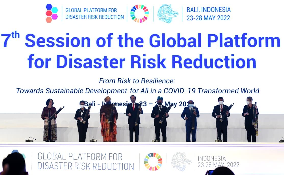 Saat menghadiri upacara pembukaan The 7th Global Platform for Disaster Risk Reduction (GPDRR) 2022, yang digelar di Bali Nusa Dua Convention Center (BNDCC), Kabupaten Badung, pada Rabu, 25 Mei 2022, Presiden Joko Widodo menawarkan kepada dunia, Konsep Resiliensi Berkelanjutan.