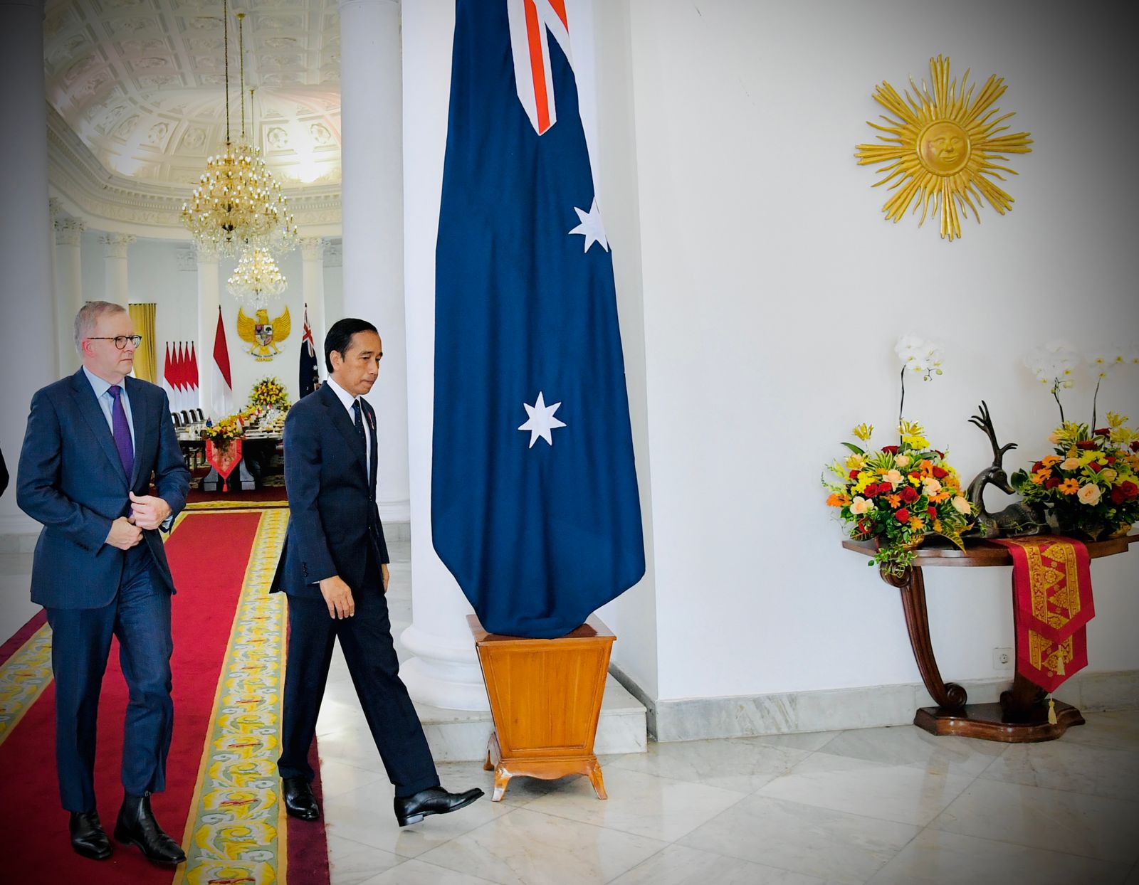 PEDOMAN.id – Presiden Joko Widodo menggelar pertemuan bilateral dengan Perdana Menteri (PM) Australia Anthony Albanese dalam kunjungan resminya ke Istana Kepresidenan Bogor, Jawa Barat, pada Senin, 6 Juni 2022. Dalam pertemuan tersebut, kedua pemimpin negara membahas sejumlah upaya kerja sama bilateral utamanya dalam bidang ekonomi.