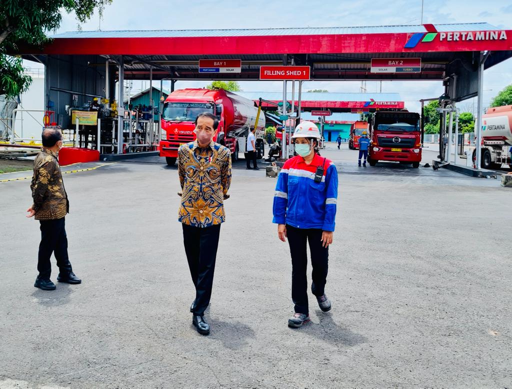 PEDOMAN.id – Di luar agenda yang sudah dijadwalkan, Presiden Jokowi melakukan peninjauan ke Terminal BBM Sanggaran di Denpasar, Bali, 3 Desember 2021.