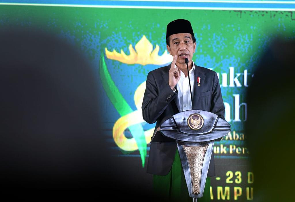 “Apabila ini bisa dirajut dalam sebuah kekuatan lokomotif saya meyakini ini bisa menarik gerbong-gerbong yang ada di bawah untuk bersama-sama dalam rangka menyejahterakan kita semuanya,” ujar Presiden saat meresmikan Pembukaan Muktamar Ke-34 NU di Pondok Pesantren Darussa’adah, Kabupaten Lampung Tengah, pada Rabu, 22 Desember 2021.