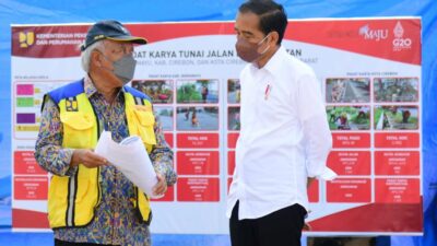 PEDOMAN.id – Presiden Joko Widodo meninjau kegiatan padat karya tunai jalan dan jembatan yang dilakukan…