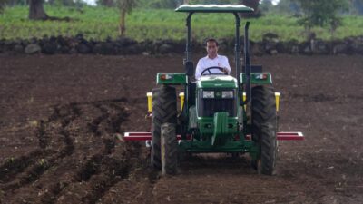 Momen Presiden Jokowi Tanam Jagung Pakai Traktor