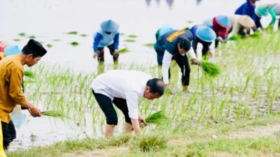 PEDOMAN.id – Presiden Joko Widodo didampingi Ibu Iriana Joko Widodo melakukan kegiatan percepatan tanam padi…